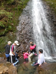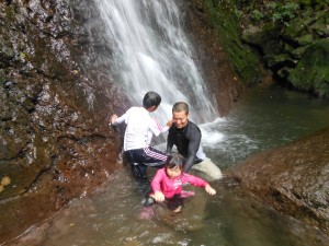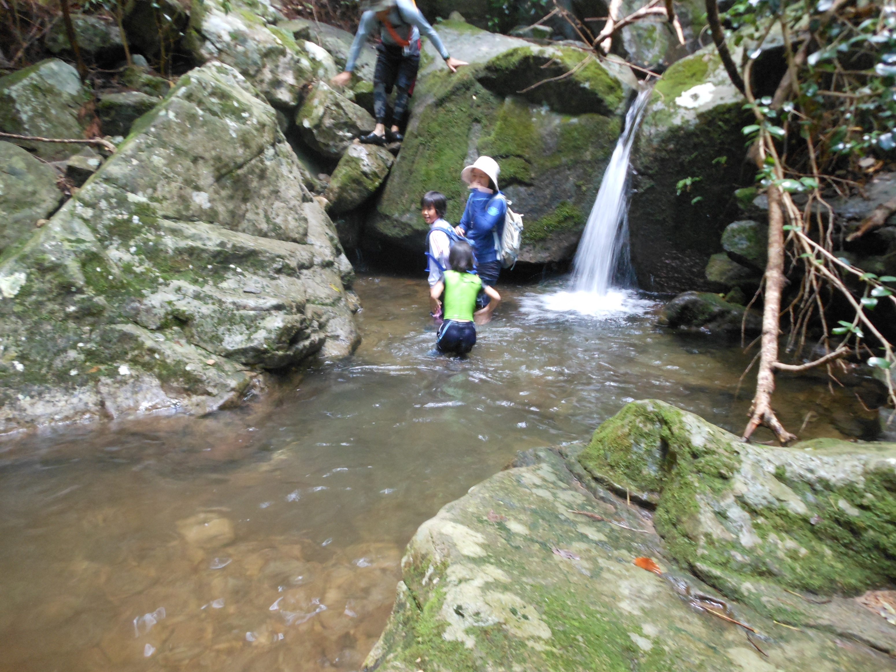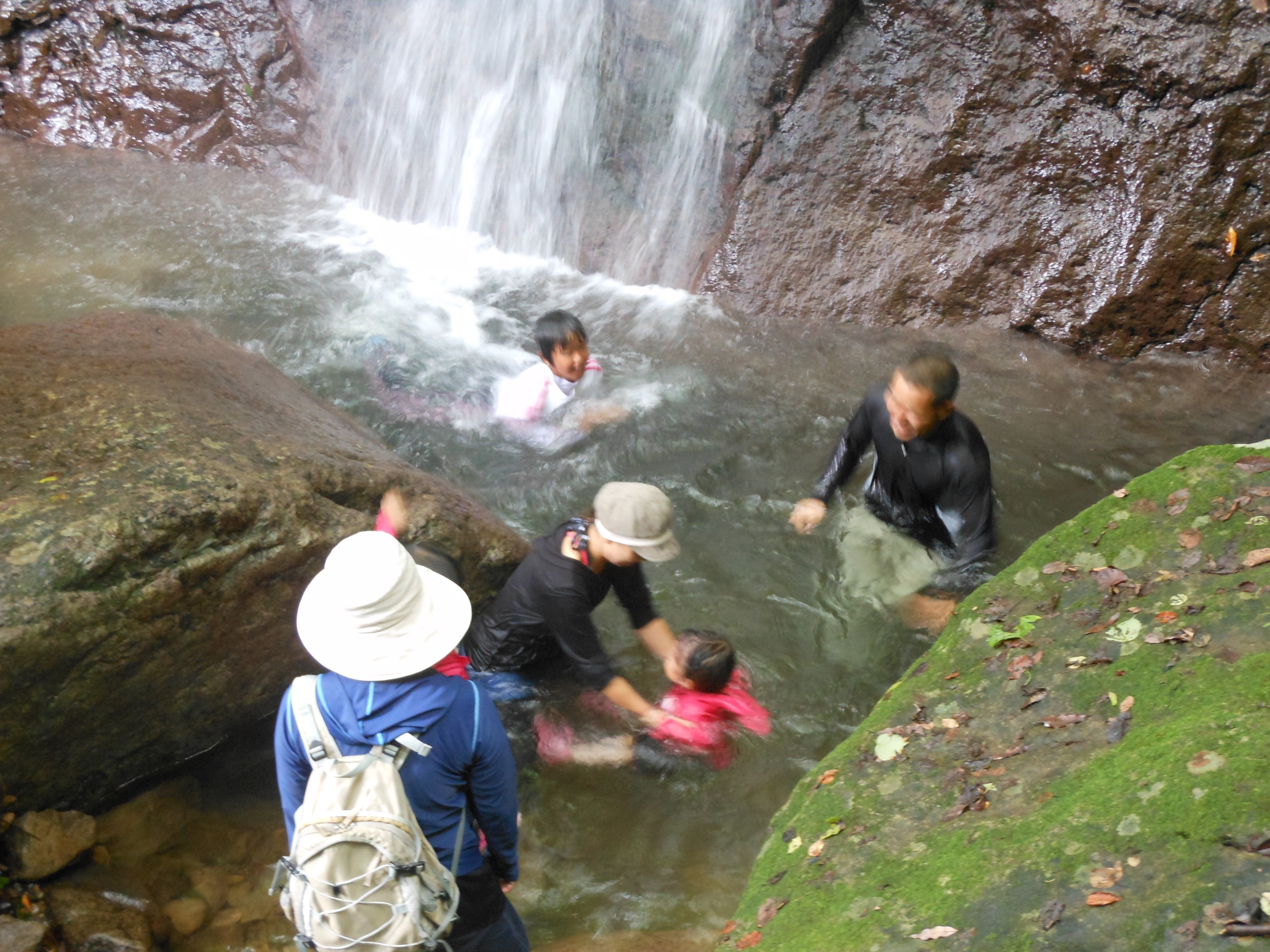 休憩地点の滝壺に到着!水が怖い約1名の彼を除いてみんな大はしゃぎ〜♬