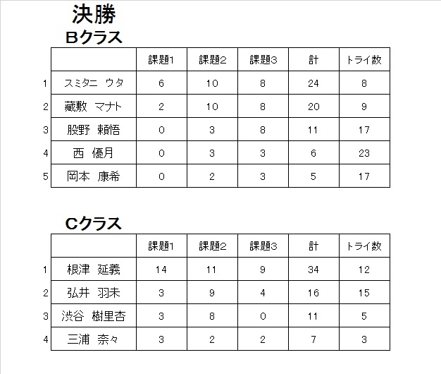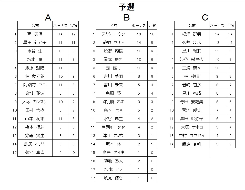 あ、それとCクラス予選3位の子が体調不良で決勝を棄権したので繰り上がりで、決勝の顔ぶれが予選のリザルトと