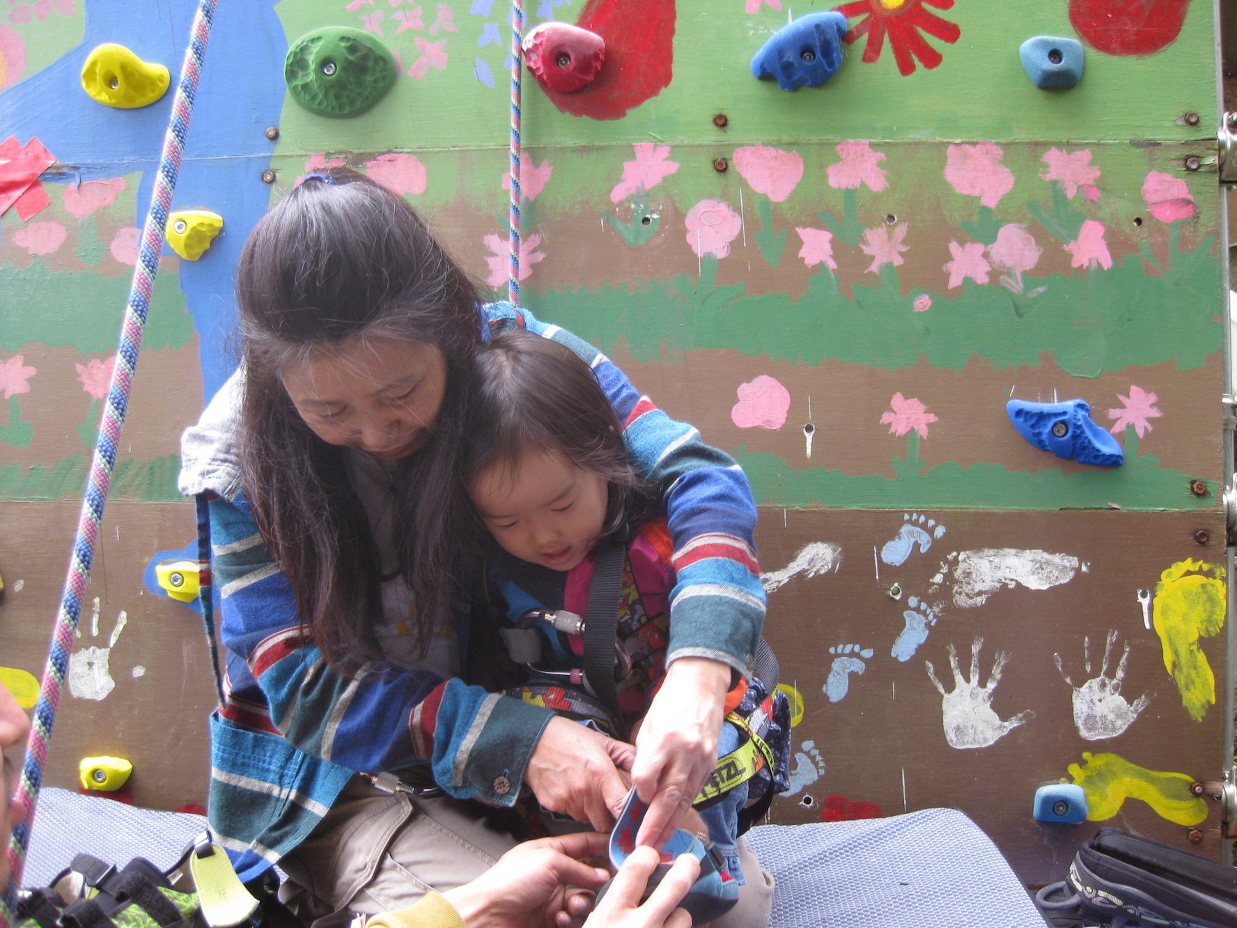 ・幼児クラスはクライミングのルールとマナーなどを保護者も学びながら、一緒に登っていただく
